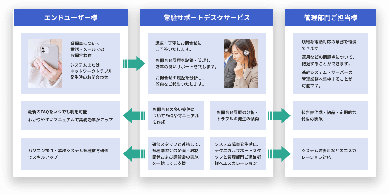 技術スキルを持ったスタッフがITシステムの管理運用を常駐にて行います。